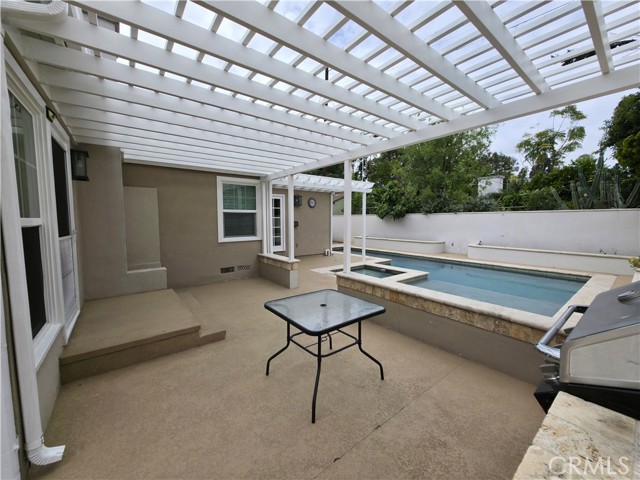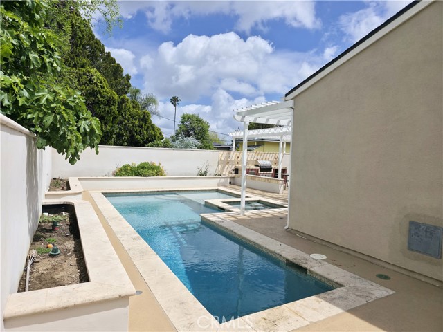 Welcome to this light-filled 3-bedroom, 2-bathroom residence offering an exceptional blend of comfort, style, and seamless indoor-outdoor living in one of Tarzana’s most desirable and walkable neighborhoods. Step inside to discover freshly refinished Brazilian cherry hardwood floors, newly painted interiors, and an open-concept layout designed for both everyday living and effortless entertaining. Expansive windows bring in abundant natural light, creating a bright and airy ambiance. The main living space is anchored by a classic wood-burning fireplace—an increasingly rare feature that adds warmth and character. The kitchen is thoughtfully designed with newer appliances, sleek countertops, ample cabinetry, and a brand-new premium refrigerator. Recessed lighting enhances the home’s modern aesthetic, while a Wi-Fi-enabled smart thermostat and central HVAC provide comfort and efficiency year-round. The primary suite serves as a tranquil retreat, featuring backyard views and a spacious ensuite bathroom with dual sinks, storage, a soaking tub, and a separate shower. A skylight fills the space with natural light, creating a bright, spa-inspired atmosphere. The secondary bathroom offers a full tub and shower. An added highlight is the attached garage, converted into a finished bonus space with its own full bathroom including a shower, sink, and toilet. This versatile area offers flexibility for a guest suite, home office, gym, or additional living space. Step outside to a private backyard oasis designed for relaxation and entertaining. The yard features a sparkling pool with an aqua-blue pebble finish that creates a resort-inspired ambiance, along with a Baja shelf, spa, and energy-efficient variable-speed equipment. A covered pergola provides a shaded retreat, while the built-in BBQ with sink creates an ideal setting for outdoor dining and gatherings. The backyard is designed for indoor-outdoor living with multiple seating areas creating a private atmosphere. The home’s exterior has been freshly painted and maintained, offering a move-in-ready experience. Additional features include in-unit washer and dryer, multi-zone irrigation, LED lighting, and enhanced security with a digital front entry system. Set on a quiet, well-kept street, the home is ideally located near Ventura Boulevard with easy access to dining, shopping, parks, schools, and local amenities.