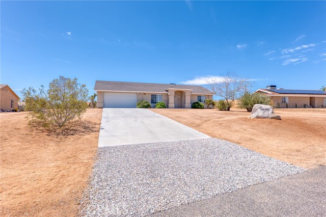 Desert Retreat with Space, Comfort & Adventure Nearby. Built in 2005, this beautifully maintained home offers the look and feel of new construction. Ideally located just minutes from town, you’ll enjoy the perfect balance of peaceful desert living and convenient access to everything Yucca Valley is known for—stunning natural surroundings and unforgettable star-filled nights. Adventure awaits in every direction. Head north for off-roading, camping, and the world-renowned King of the Hammers, or travel south to explore local shops, dining, and amenities in town. Pride of ownership shines throughout this meticulously cared-for home. Recent upgrades include a brand-new roof, and the property features central heating and air for year-round comfort. Both bedrooms are generously sized and include walk-in closets, offering plenty of storage space. Step outside to a covered back patio—perfect for relaxing or entertaining—overlooking a fully fenced backyard. Situated on over half an acre, there’s ample space for vehicles, RVs, and all your recreational toys.