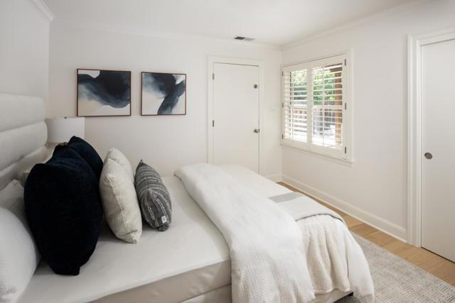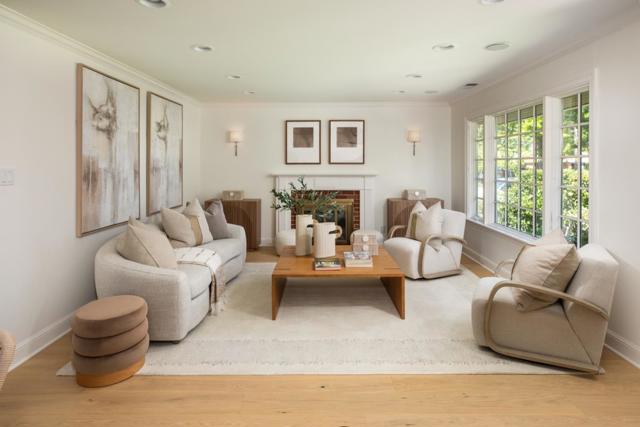 Located in the highly desirable Flood Park neighborhood, this beautifully updated home combines classic design with modern comfort. A welcoming front porch opens to a light-filled great room with wide-plank hardwood floors and a wood-burning fireplace. The remodeled kitchen features white cabinetry, granite countertops, counter seating, a nicely sized breakfast area, and access to the garage, along with premium stainless steel appliances including a Viking gas range and Bosch dishwasher. The home offers four bedrooms, highlighted by a spacious primary suite with vaulted ceilings, a sitting area, and a luxurious bath with dual vanities, soaking tub, glass-enclosed shower, skylight, vaulted ceiling and a large custom walk-in closet. Bathrooms are thoughtfully designed for convenience and style and each with dual vanitiy. The private backyard is ideal for relaxing or entertaining, featuring an Ipe wood deck, vine-covered arbor with cafe lighting, multiple seating areas, privacy, and a generous lawn. Conveniently located near parks, Highway 101, and top-rated Menlo Park schools, this home offers comfort, style, and an exceptional location and neighborhood.