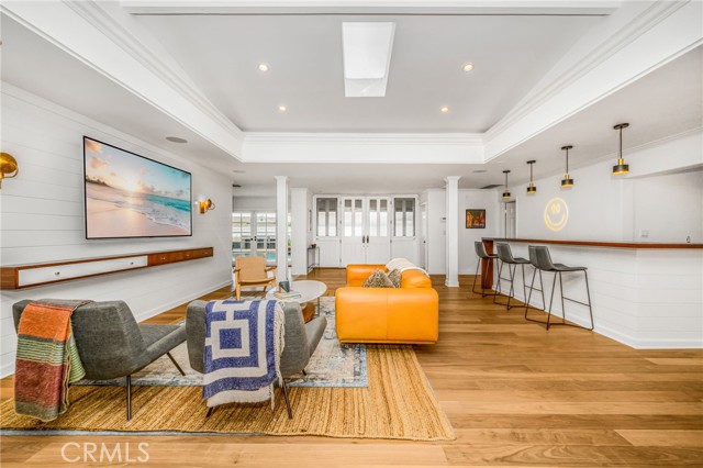 Located in West Newport's most desirable neighborhood, Dover Shores, 1800 Glenwood Lane offers a rare opportunity to enjoy expansive, single-level living, complete with pool, spa, generous yard and plenty of privacy. All located on a premium corner lot on a quite and coveted street. Spanning approximately 3,288 square feet, this thoughtfully appointed residence includes 4 bedrooms, primary with en-suite, large secondary bathroom and a generous powder.. Recent upgrades include bathroom remodels and new hardwood flooring throughout. The interior is tailored for both relaxed living and effortless entertaining, featuring an airy open layout complemented by multiple gathering areas, including two distinct living spaces and a dining room suited for all occasions. The kitchen boasts ample space for cooking and casual dining, while a well-positioned wet bar at the center of the home enhances the flow for hosting. Hardwood and tile flooring carry throughout, creating a polished yet clean and practical finish, custom built-ins add both character and functional storage. Privately situated, the primary suite serves as a calming retreat, highlighted by a beautifully updated bathroom with a curb-less walk-in shower, soaking tub, and an oversized walk-in closet. The outdoor areas are designed to elevate everyday living. A secluded front patio delivers a resort-like experience, complete with a heated saltwater pool, spa, and built-in BBQ, ideal for entertaining or unwinding in privacy. The backyard offers a secondary space to gather or relax, featuring a built-in fire pit and room for outdoor enjoyment, while a dedicated sauna adds a distinctive wellness element. The three-car garage with extensive storage accommodates vehicles, recreational gear, and more, supporting an active coastal lifestyle. Known for its wide, tree-lined streets and welcoming atmosphere, Dover Shores also offers convenient access to top-rated schools, the scenic trails of the Back Bay, and Newport Beach's renowned shoreline. This home brings together scale, comfort, and location in a way that truly captures the essence of Newport living.