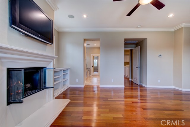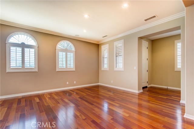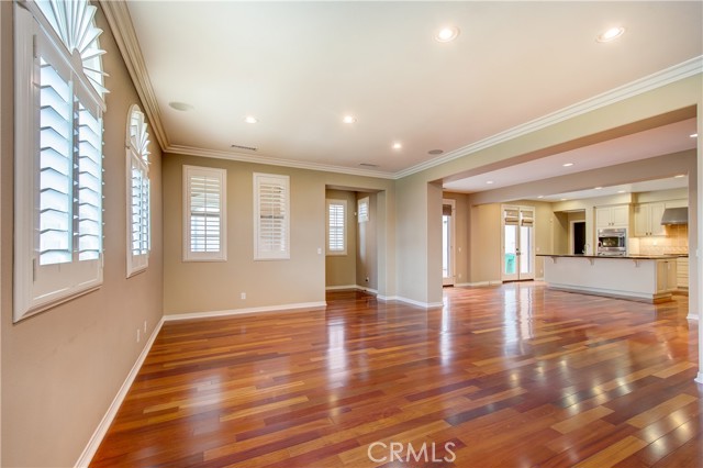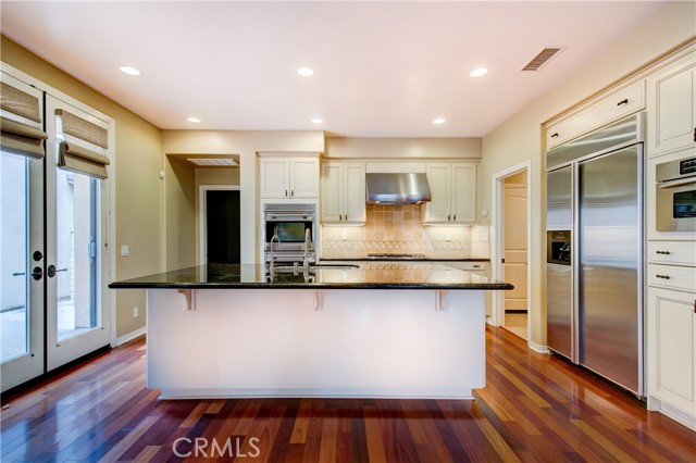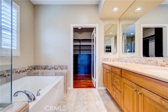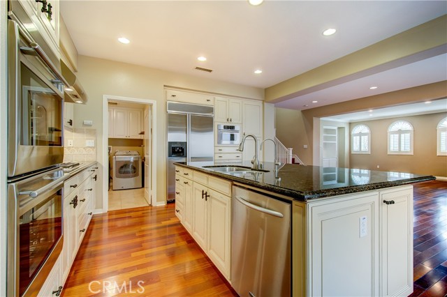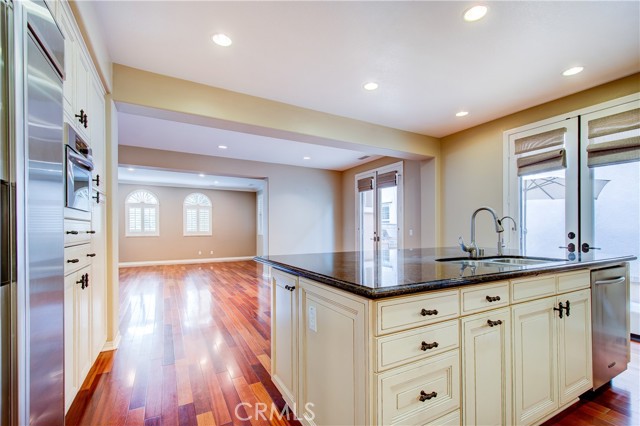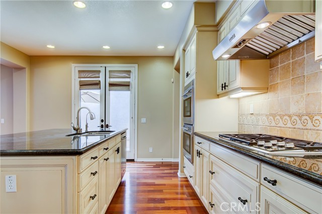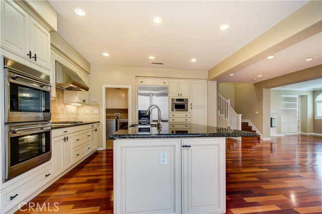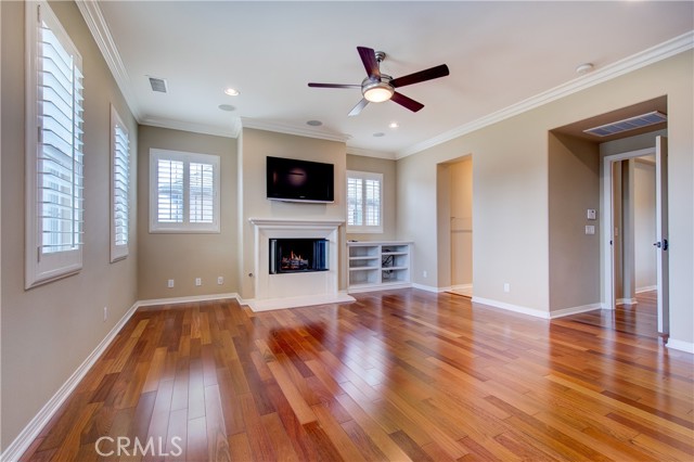 Fabulous detached home located at the most sought of Woodbury community in the city of Irvine, and walking distance to Woodbury Towncenter, which includes Ralphs, Trader Joe's, Bank of America, Hoag Urgent care. The amazing floor plan offers a downstairs guest room with an in-room full bath. Gourmet kitchen with large center island, granite countertop, full custom backsplash, stainless steel appliances, built-in refrigerator, and double oven. The laundry room is adjacent to the kitchen and leads to the two-car garage. The generous dining room leads to a beautiful side yard with built-in BBQ through french doors. Upon entry into the spacious family room, fireplace provides you and your guests a warm cozy place to get together. Spacious master suite is upstairs with built-ins, crown molding, ceiling fan, and fireplace that adds a cozy atmosphere. Bathroom in this suite is highly upgraded with a large soaking tub, dual vanity, and beautiful tile backsplash. Oversized walk-in closet features plenty of built-ins for convenient storage space. Secondary rooms are painted with nice color with big size closet. Other upgrades include beautiful wood floors throughout the whole house, recessed lighting, custom paint, custom built-in entertainment center. Water soften system throughout the whole house. Easy access to resort-quality amenities and the highest-ranked schools in OC! Welcome home.