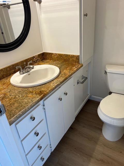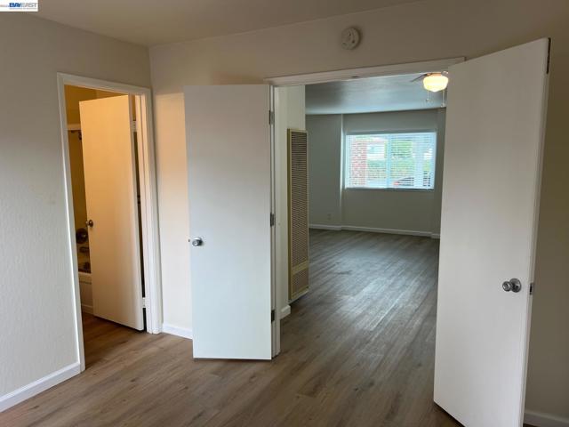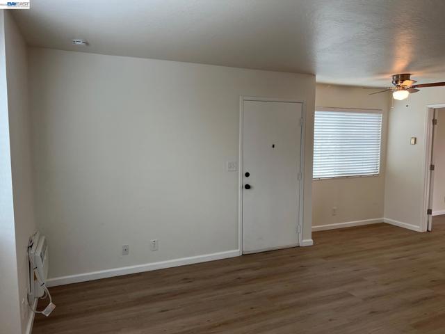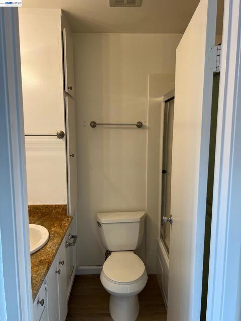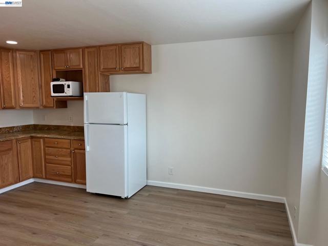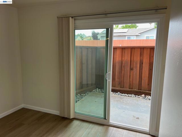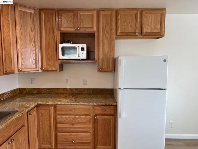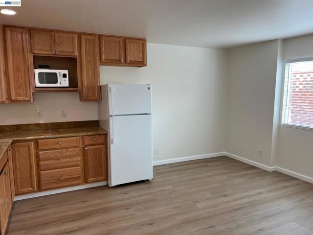 Updated One Bedroom Apartment in Pleasanton's Vintage Hills! Sunny, first floor unit, kitchen/living area with plank floors, ample kitchen cabinets, granite counters, dining area with lighted ceiling fan, double door access to bedroom suite featuring, bathroom with granite counter, large walk-in closer, slider access to private patio. One covered parking space. Water & Garbage included in the rent. On-site laundry. Walking distance to shopping, dining, services and community parks.