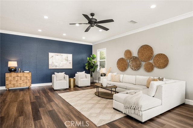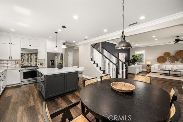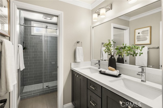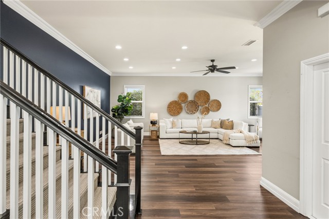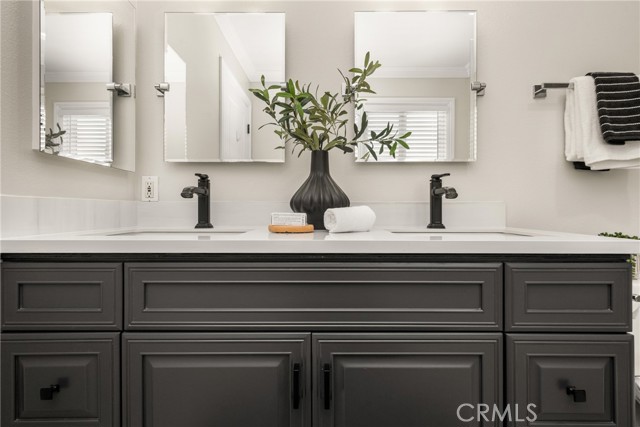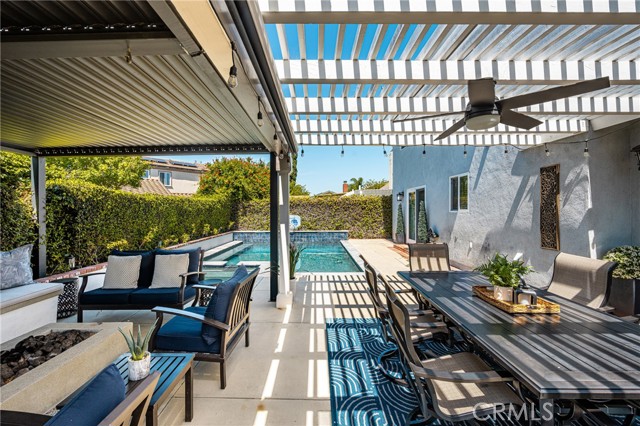 Fully remodeled home located in a highly desirable Irvine neighborhood with no HOA and no Mello-Roos. This property features a main floor primary bedroom and bathroom, offering convenience and flexibility. Interior and exterior upgrades include luxury wide plank vinyl flooring, open floorpan, custom kitchen cabinets, quartz countertops, and a walk-in pantry. The spacious living room offers high ceilings and abundant natural light. Upstairs includes three bedroom, bathroom and a walk-in storage area. Additional features include Ethernet wiring throughout and paid solar. A secondary family room at the rear of the home opens to the backyard. Outdoor amenities include a remodeled PebbleTec pool and spa with mobile controls, a custom fire pit with polished concrete seating, and an aluminum pergola with adjustable coverage for sun and shade. The home also includes dual-zone cooling for added comfort. Conveniently located near highly rated Irvine schools