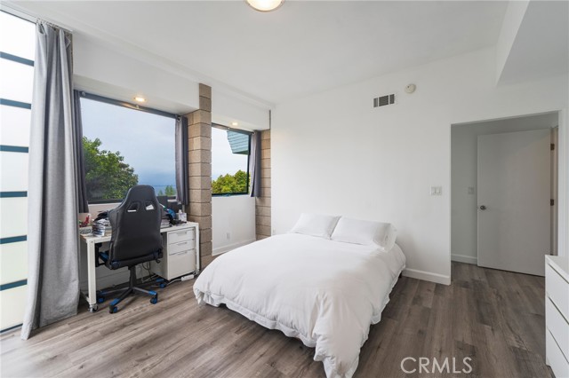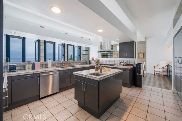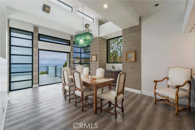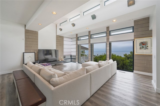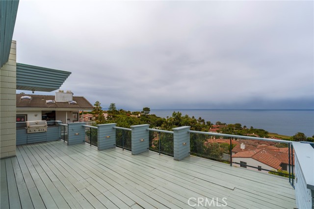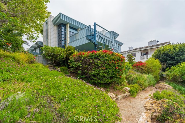 Custom built home designed by renowned architect Wade Killefer. This beautiful home was designed to fully enjoy the breathtaking ocean views with custom accents throughout. As you enter, a gorgeously designed curved architectural stairwell leads you to the upper or lower levels of the home. The upper level includes a living room, den, dining room and kitchen with views of the ocean and Catalina. An open kitchen designed for gourmet cooking and entertaining. Clerestory windows illuminate the home with 20 custom lights throughout the kitchen and living room. Upper deck access with built in barbecue. Fireplaces located in the den and living room with custom stainless steel and glass framed doors. Large master suite with custom built in teak furniture. Bright master bathroom with a double shower and separate tub. Walk out onto the deck from the master suite and enjoy the lower deck or take stroll down through the garden. Spiral outdoor staircase leading from the upper to lower deck. Large terraced yard. So many possibilities for gardens, landscaping, and outdoor living. Separate laundry room with custom drainage and access to storage room. Located on a quiet cul de sac.