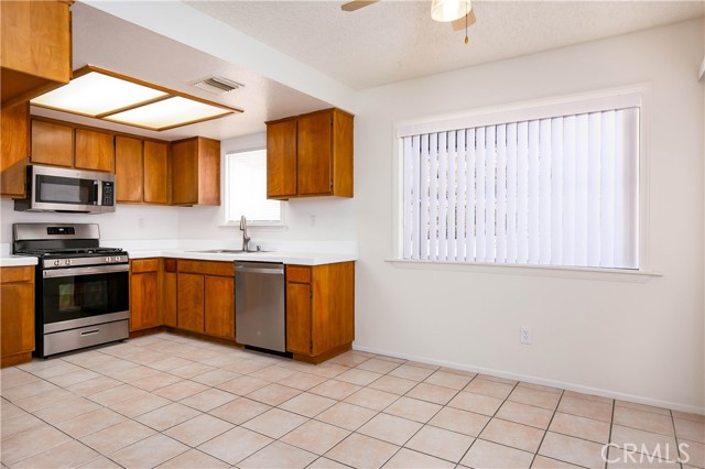 Move-in ready 3-bedroom, 2-bath home in Lake Los Angeles! Step inside to a bright and welcoming living space featuring neutral paint tones that complement any style and create a warm, airy feel throughout. The cozy fireplace is perfect for those cold winter nights, making the living room an ideal place to relax and unwind. The kitchen offers refinished countertops and stainless steel appliances, providing a clean, modern touch while maintaining functionality for everyday living. Both bathrooms have been tastefully updated with refinished bathtubs, adding to the home's fresh and well-cared-for appeal. Down the hallway, you'll find comfortable bedrooms filled with natural light, offering flexibility for family, guests, or a home office. Step outside and imagine the possibilities to create your own outdoor retreat. With a brand-new roof and thoughtful updates throughout, this home is truly move-in ready. A great opportunity to own a charming home with modern touches in a growing area--come see it for yourself!