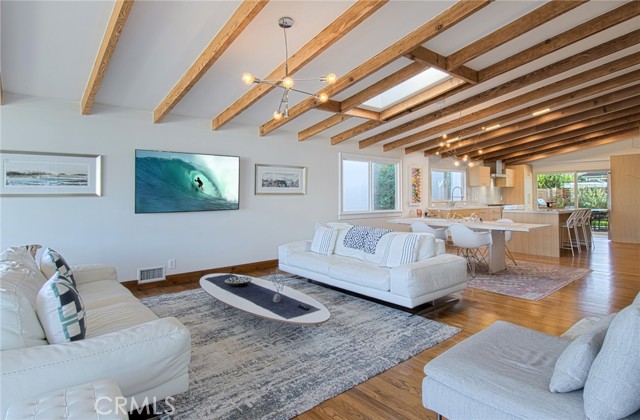 This is the most sought-after Plan A model in Warner Village, offering peaceful views of lush landscaping, koi ponds, and flowing waterfalls. This rare 3-bedroom, 3-bath corner unit combines privacy, space, and resort-style amenities in a highly walkable location. The open-concept layout is ideal for everyday living and entertaining, featuring an Italian marble entry, a formal living room with marble fireplace, and multiple outdoor spaces. The kitchen includes granite countertops, a breakfast bar, terrazzo gray slate flooring, and a new refrigerator, and it opens to a spacious family room and patio overlooking the park-like grounds. A formal dining area overlooks the living room below, adding light and dimension. Interior features include hardwood floors, crown molding, recessed lighting, vaulted ceilings, surround sound, fresh interior paint, mirrored closets, and tiled upstairs baths. With only one shared wall, the unit is exceptionally quiet and private. Outdoor living includes one balcony with sweeping treetop views and two patios, including a front patio that doubles as prime seating for summer Concerts in the Park. A bonus room with built-ins offers flexible space for a home office or storage. An attached two-car garage is included. Residents enjoy access to a private gated pool and spa, tennis courts, gym, and racquetball courts, all connected by scenic walking paths and wooden bridges. The property is within walking distance to The Village at Topanga, restaurants, and shopping.