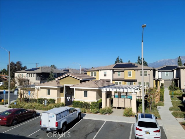 Welcome Home! Come enjoy serene living. You will love this private complex in the heart of Ontario. Once you walk inside, you enter into a beautiful foyer area with steps leading to the main living quarters. This beautiful end unit home features an open floor plan with 2 bedrooms, 2 baths, and a 2-car attached garage. Generous living square feet and highly upgraded interior. The living room is connected with a gourmet kitchen which includes stainless steel appliances, expansive cabinets, granite countertops, and pantry. The large washer and dryer are in a separated room for convenience. The bedroom suite has a walk-in-closet a large bathroom with a soothing tub, and a separate shower. The secondary bedroom is bright and airy and includes a large closet with organizers. The townhome has a solar system installed for monthly savings and the HOA manages the exterior gardening. The condo features recessed lights, ceiling fans, and shutters throughout. The huge balcony is a relaxing oasis and has view of the mountains and quiet community. Steps away, is the inviting pool, clubhouse, BBQ area and a pocket park. Great location with quick and easy access to the freeways, restaurants, markets, shopping centers, and more. Don't miss out on this great opportunity!