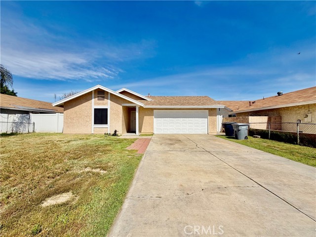 Welcome to this inviting 4 bedroom, 2 bathroom home located in the heart of Perris. As you arrive, the property immediately stands out with its spacious front yard and secure gated entry, offering both privacy and an added sense of comfort. The generous outdoor space provides plenty of room for landscaping possibilities, outdoor seating, or simply enjoying the open feel of the property. Upon entering the home, you are greeted by a bright and open living room that creates a welcoming atmosphere. Updated carpet adds a fresh and comfortable touch, while the sliding glass door allows natural light to fill the space and provides convenient access to the backyard for indoor-outdoor living. The kitchen presents a clean and functional design, featuring sleek countertops, ample cabinetry for storage, and durable tile flooring. Its layout allows for easy meal preparation and organization, while the direct access to the garage adds an extra level of everyday convenience. Continuing down the hallway, the main living quarters offer well-proportioned secondary bedrooms, each providing comfortable space, closet storage, and updated carpet that complements the home's cohesive interior. The secondary bathroom is thoughtfully designed with white cabinetry, tile flooring, and a shower and tub combination, creating a practical and polished space. Additional cabinetry located in the hallway offers valuable storage for linens, household essentials, or seasonal items. The primary suite provides a relaxing retreat within the home, offering a well-sized closet and updated carpet that enhances comfort. The en-suite bathroom features tile flooring, white cabinetry, a single sink vanity, and a walk-in shower, creating a private and functional space designed for daily ease. The backyard is truly expansive and wraps around the home, offering an abundance of outdoor space with endless possibilities. Whether envisioning entertaining areas, gardening, play space, or future outdoor upgrades, the size and layout provide flexibility to create the outdoor environment that fits your lifestyle. Located in proximity to Perris High School, local parks, shopping, dining, freeway access, and much more!!! Schedule your showing today before it is too late!
