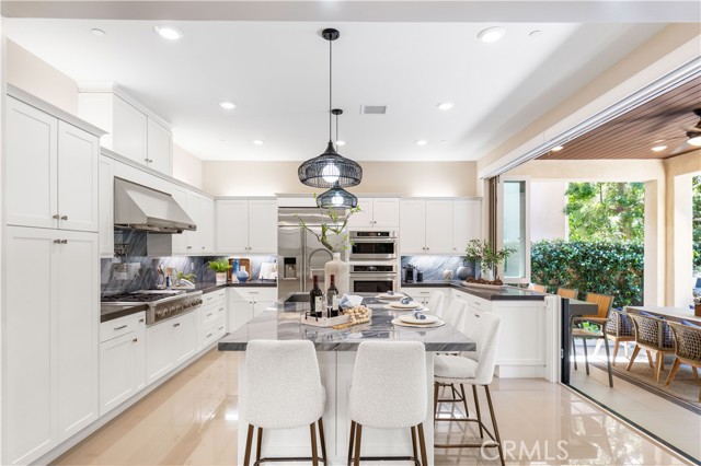 Former model home with designer upgrades, a fully integrated smart home system, a resort-style backyard, and a rare third-floor retreat with open views—ideally positioned on a premium lot with no drive-through traffic and no direct front-facing neighbors, directly across from park and community amenities. This extensively upgraded and meticulously maintained residence offers approximately 3,134 square feet of refined living space, featuring 4 bedrooms, 4 full bathrooms, and 2 powder rooms across three thoughtfully designed levels. A dramatic two-story entry, abundant natural light, and an open-concept layout create a bright and welcoming atmosphere, delivering a true like-new living experience. The gourmet kitchen serves as the centerpiece of the home, showcasing top-of-the-line appliances, upgraded cabinetry, an expanded porcelain island, and a sleek porcelain backsplash—seamlessly connecting to the living and dining areas for both everyday living and entertaining. A desirable first-floor bedroom suite with a full bath offers flexibility for guests or multi-generational living. Designed for modern convenience, the home features a fully integrated smart system with automated blinds, Lutron lighting and fan controls, and app-based access for AC and entry. Step outside to a private, resort-style backyard retreat featuring a built-in kitchen, fireplace, water features, and lush landscaping—creating an exceptional outdoor living experience. Upstairs, the primary suite offers generous space, natural light, and a spa-inspired bathroom with upgraded finishes. Two additional bedrooms complete the second level, and notably, every bedroom features its own en-suite bathroom and custom built-in closet system. The third floor offers a versatile entertainment space with direct access to a private outdoor patio, enhanced with an awning and privacy fence—perfect for a lounge, office, or media room with beautiful open views. Additional highlights include a finished garage with epoxy flooring, built-in cabinetry, overhead storage, Tesla charger, and an expanded driveway. Ideally located within walking distance to Cadence K-8, minutes to Portola High School, and near the future Great Park development, including botanical gardens, lakes and the library. Select furniture and designer decor may be included, offering a turnkey opportunity.