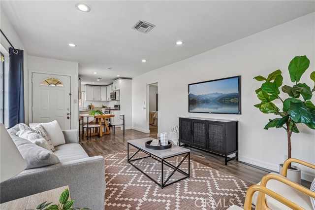 There’s a quiet sense of ease the moment you arrive, a feeling of being gently set apart from the outside world. This thoughtfully designed home, freshly painted with a neutral palette, offers a warm welcome as you enter the private foyer, a natural transition as you ascend to the main living level. The home enjoys a peaceful, elevated feel, & grounded in light, openness, & calm. Once upstairs, vaulted ceilings soar above the main living areas, enhancing the airy, light-filled layout. Dual-pane windows with decorative grids & plantation shutters allow sunlight to filter in beautifully, while designer carpet & linen-style porcelain tile add warmth & texture underfoot. The living room centers around a marble tile inset gas fireplace, complemented by a pull-down TV mount that blends form & function. The home's relaxed & balanced atmosphere is reinforced by the air conditioning & powerful three-blade ceiling fan in the spacious dining room. The kitchen is both refined & practical, featuring crisp white cabinetry with soft-close drawers, pull-out drawers, a spice cabinet, a large closet-size pantry, under-cabinet lighting, recessed lighting, & a silverware organizer. Granite countertops, stainless steel appliances, & ample prep space make it ideal for a gourmet chef, entertaining, & everyday living. The primary suite offers a calming retreat with vaulted ceilings, mirrored wardrobe doors, custom closet organizers, & additional storage above the closets. The en-suite bathroom features generous counter space & linen storage, a 2nd closet, a LUXE bidet, & clean, coastal-inspired finishes. A secondary bedroom provides flexibility for guests, a home office, or creative space & includes a ceiling fan, closet organizer & mirrored wardrobe doors, while the nearby bathroom features a second LUXE bidet & coordinated finishes. Step outside to the private south-west facing balcony—a sunlit extension of the living space that’s perfect for morning coffee, evening relaxation, or quiet reflection. The outdoor space feels open yet private, enhanced by the home’s elevated orientation. Additional highlights include 6-panel doors, an attic fan, PEX repipe, saltwater softener system, reverse osmosis at kitchen sink, & one-car enclosed garage with direct access—offering both convenience & versatility. Residents enjoy access to a community pool & spa, & is located near shopping, dining, parks, award-winning schools, & restaurants.