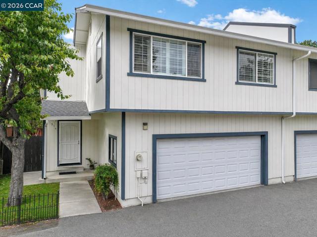 Rarely available, beautifully updated townhome with a 2-car garage! Highly desirable corner unit in a peaceful, tree-lined community filled with natural light. Freshly painted inside and out, this home offers both style and comfort. The spacious living room features vaulted ceilings, wood laminate flooring, and an updated electric fireplace with a built-in entertainment center. The modern kitchen includes granite countertops and newer stainless steel appliances. The oversized primary bedroom showcases crown molding and a custom built-in closet system. Additional upgrades include dual-pane windows and patio doors, along with elegant white plantation shutters throughout. Enjoy seamless indoor-outdoor living with a large living area that opens to a private fenced backyard perfect for relaxing or entertaining. Both front and back yards feature low-maintenance artificial turf for water conservation. Ideally located near downtown Concord with quick access to freeways and BART. Low HOA dues. Move-in ready!