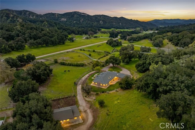 Extraordinary opportunity to own a Ranch in Ranchita Estates offering 53 acres, two residences, and premier equestrian amenities with direct access to private and public horse and hiking trails—accessible directly from your own property. A rare blend of refined single-level living, multi generational living, functional ranch infrastructure, and breathtaking natural surroundings. The main 3/4 residence is thoughtfully designed on a single level with soaring ceilings, recessed lighting, tile and carpet flooring and functional floor plan. The private primary wing features expansive windows, two walk-in closets, carpet and laminate flooring, dual vanity areas, jetted soaking tub and walk-in shower. From most of the main living spaces, you can sit and enjoy peaceful views of horses grazing in the pastures and the rolling hills beyond. Living and family rooms showcase a fireplace, open-beam wood ceilings, custom built-ins, and sliders opening to a screened and covered patio ideal for alfresco dining. The backyard blends seamlessly into acres of open land, allowing you to ride or hike directly from your property into miles of scenic trails. The home also includes a formal dining area w/ built-ins, kitchen with tile countertops and floors, pantry, casual dining nook surrounded by windows and pasture views, two additional ensuite bedrooms with walk-in showers, a half bath, laundry room with abundant cabinetry and backyard access, and a three-car garage with built-in storage and utility sink. A charming guest house built in 2018 (unpermitted) offers approximately 1,300sq ft (not included in the square footage above) with 3 bedrooms and 1 bath. Rustic in style, it features cement floors, oak shaker cabinets, tile countertops, handmade built-in wood table, barn doors, high ceilings with exposed wood beams and sliders to the backyard. This is a true horse property including a pole barn with 2+ stalls, tack room, arena, top electric fencing, two large paddocks with potential for expansion, four large pastures (three with water), chicken coop, and electricity throughout most of the property. Additional features include two wells, two septic systems , 5,000-gallon water storage tank, tankless water heater, A/C with upgraded ducting, leased propane, owned and leased solar components and even a seasonal creek that accents the properties peaceful setting. Endless opportunity to live, ride, and roam—where luxury meets land, trails, and the timeless beauty of ranch living.