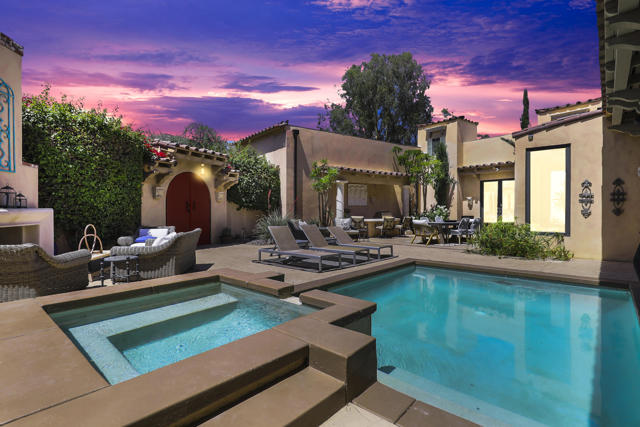 Exceptional. Stunning, Dramatic. Welcome to this exquisite Tuscan inspired VILLA in Rancho Mirage, where luxury living meets breathtaking golf course and mountain views.Designed for both elegant living and unforgettable entertaining, this residence boasts 3 spacious bedrooms and 4 beautifully remodeled bathrooms, each finished with luxurious stonework featuring marble and granite through- out. Rich Travertine flooring flows seamlessly through the home, enhancing timeless sophistication. The grand living room with fireplace sets a warm inviting tone, while the dining rooms upholstered walls add a dramatic designers touch. A fully appointed wet bar and surround system elevate the homes entertainment appeal. Ay the heart of the home s a large Gourmet kitchen, showcasing Viking appliances, and expansive center island, and beautiful cabinetry and counter tops, the homes entertainment appeal. Step outside to a private resort style oasis featuring a sparking pool and spa, loungers with umbrellas, and a built in outdoor kitchen, ideal for year round desert entertaining. A charming Casita offers flexible space for guests, a private retreat with its own entrance.This remarkable Tuscan Villa delivers luxury, comfort, and dramatic desert beauty- all set against one of Mirages most stunning backdrops. This Home is also available for a LONG term Lease see MLS # 219146509