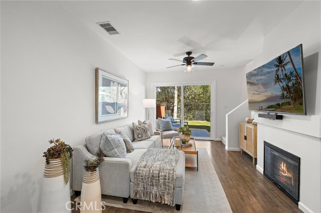 Beautifully remodeled pool home in the gated Sierra La Verne community. Situated at the end of a cul-de-sac approached by a private driveway, this residence offers exceptional privacy. The front grounds are highlighted by a brick ribbon driveway, an expansive herringbone brick courtyard, illuminated planters, and a covered entry leading to a beautifully crafted front door. Inside, vaulted ceilings and a chandelier create an inviting first impression, with LVP flooring extending throughout the main living areas. The living room is filled with natural light and flows seamlessly into the formal dining area, defined by a custom banister and railing. The family room opens directly to the kitchen and features vaulted ceilings and a fireplace with custom tile surround and mantel, and sliding glass doors to the backyard. The kitchen features an oversized island with seating and electric cooktop, classic white cabinetry, granite countertops, tiled backsplash, stainless steel appliances, recessed lighting, and a sink capturing outdoor views. The main level also includes a custom-designed powder room with shiplap detailing, a hall closet with a barn door, and a laundry room with direct access to the finished three-car garage. The primary suite is located on the first floor, offering vaulted ceilings, a paneled accent wall, and access to the backyard. The remodeled primary bath presents dual sinks, circular mirrors, a freestanding soaking tub set against a decorative patterned tile wall with subway tile wainscoting, a separate tiled shower with sliding glass enclosure, and a private water closet. Upstairs, three additional bedrooms are complemented by an oversized, fully remodeled bathroom featuring dual sinks, tile flooring, and a custom tiled shower/tub. The backyard is designed as a private retreat, showcasing a newly plastered pool and spa with brick coping, expansive concrete decking, a grass area with a mature tree, an Alumawood-covered patio, and brick-accented planters. Spacious side yards including one with drought-tolerant succulent landscaping. Wrought iron fencing along one side opens to a neighboring greenbelt area, providing added privacy with no direct adjacent home, while mature city-maintained trees beyond the property offer natural shade and a serene backdrop. Mountain views further enhance the setting. Additional upgrades include a new HVAC system, a tankless water heater, and an attic radiant barrier designed to reduce heat and improve efficiency.