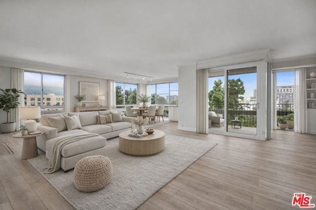 Luxury penthouse living at its finest in the heart of Beverly Hills. Sweeping hillside and city Views paired with timeless luxury define this newly remodeled corner penthouse located in the highly coveted Maple Towers in prime Beverly Hills. This expansive 2-bedroom, 2.5-bath residence with den offers approximately 1,989 square feet of beautifully updated living space with hardwood floors throughout. The open living and dining areas are ideal for entertaining, featuring a fireplace, wet bar, and floor-to-ceiling windows that flood the home with natural light and open to a private balcony with elevated views.The spacious primary suite includes an impressive walk-in closet and a luxuriously remodeled bathroom with dual sinks. All bathrooms have been recently renovated, and the home offers excellent storage with custom built-in cabinetry throughout.Additional features include an in-unit washer and dryer, a dedicated laundry room, and two side-by-side parking spaces. Maple Towers is a full-service luxury condominium offering a pool, spa, and recreation room, with a premier location just moments from Rodeo Drive, world-class shopping, dining, and entertainment. Ideally situated across from Live Nation and close to everything Beverly Hills has to offer.