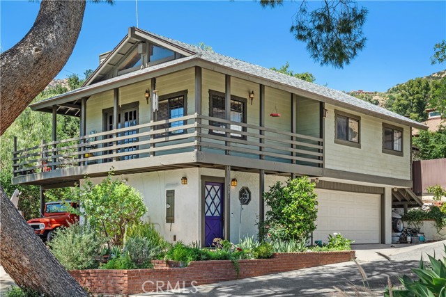 Experience tranquil hillside living in this beautifully updated two-story home nestled in the highly coveted community of Chatsworth Lake Manor, a neighborhood where properties seldom become available. Surrounded by rugged natural beauty, this inviting residence blends charm, character, and inspiring views into a warm and welcoming retreat. The home features vaulted and beamed ceilings, abundant natural light, and an effortless indoor-outdoor flow. The spacious great room opens to a wrap-around balcony and expansive deck, offering sweeping views of the surrounding hillsides—an ideal setting for morning coffee, evening sunsets, or gatherings under the stars. The remodeled kitchen showcases modern finishes, newer appliances, including wine refrigerator, and a unique chalkboard wall that adds both charm and functionality, plus beautiful Italian "Golden Lightning" granite. Just off the kitchen, a fully enclosed light-filled patio which has been transformed into a versatile studio—perfect for artists, remote work, or quiet contemplation. The first-floor primary bedroom offers convenience and privacy with an adjacent updated bathroom(2024) with bidet, while the second floor includes two additional bedrooms with high ceilings, and recently renovated bathroom (2025). Additional updates include a newer roof (2022), central air and heat, and a relaxing spa installed in 2021. A spacious driveway provides plentiful parking without the restrictions of an HOA. Outdoors, mature trees, including avocado, nectarine, Meyer lemon and orange trees, water-wise plants, brick-lined garden beds, and a calming koi pond create a serene environment that invites relaxation and interaction with nature. Located only minutes from shopping, dining, schools, and city conveniences, this home offers the rare combination of peaceful country living with easy access to everything you need. Known as “Mini-Topanga,” Chatsworth Lake Manor is beloved for its creative energy, natural surroundings, and long-term residents who treasure its quiet charm. Homes here are rarely offered—and even more rarely with this level of care, character, and view-filled outdoor space. Discover a one-of-a-kind retreat ideal for nature lovers, creatives, or anyone seeking a peaceful escape just moments from the bustle of the city.